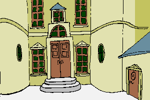 You are standing in the Courtyard of the Castle. Straight ahead is the door to the Grand Entrance Hall. To the right side is another door which you think leads to the Servants Quarters.