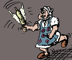 Suddenly an enourmous figure appears from a dark corner waving a rolling pin. She shouts "These were for afternoon tea! Get out of my kitchen you thief!". The cook has caught you.