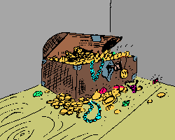Hooray!!! The key fits. You open the chest. You gaze in amazement at the jewels before you. Now you are RICH!